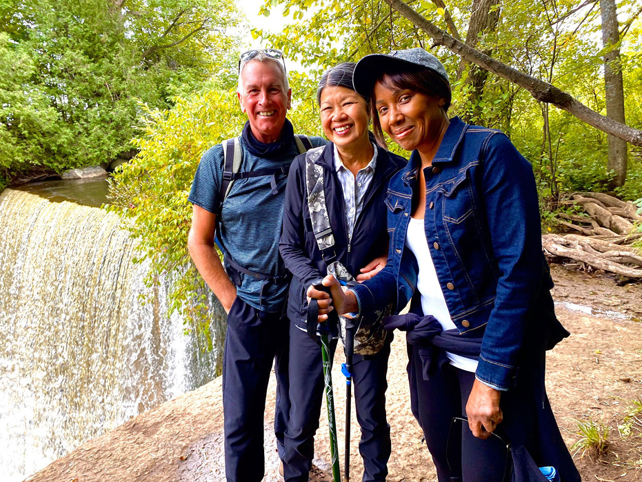 The trail is well marked and easy to find to begin the hike and the falls are about a 20 – 30 minute walk along the river and through the woods but that is over simplifying the hike. There are tricky parts if you want to go down below the falls.