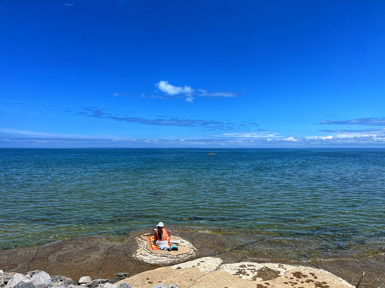 Now I consider myself very lucky to be able to cycle along Georgian Bay daily. Sunset Point provides us with beautiful displays almost every evening, the water is warm enough to swim in during the summer months and it’s big enough that on any given day, the clouds that swirl over the bay can put on pretty spectacular displays.